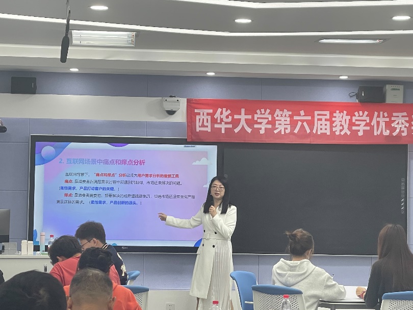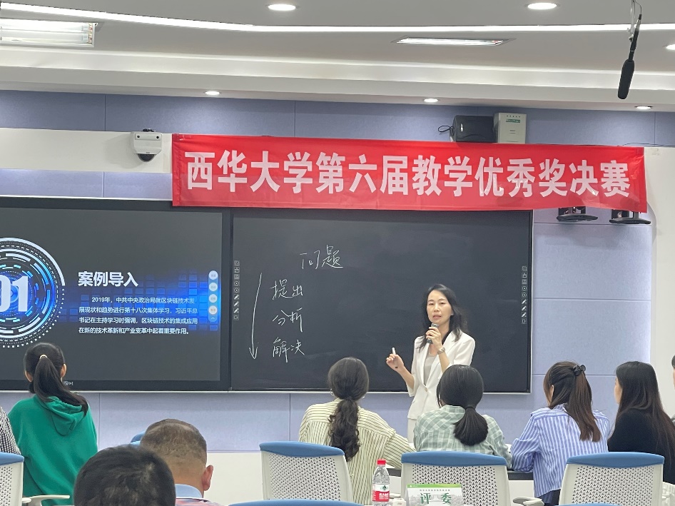 参赛教师的课堂教学内容涵盖工、理、管、法、经、文、艺等多个学科门类。比赛不分组,统一进行。每位参赛选手讲课时间不超过20分钟,参赛教师提前准备了5个不同知识点的课堂教学节段,并在决赛开始前通过抽签确定参赛的具体教学节段。比赛过程中,参赛选手仪态端庄、教态自然、精神饱满、语言流畅、逻辑清晰,围绕“以学生为中心”的教育理念,针对不同课型特点,借助现代教学技术,采用小组合作、支架式教学等多种教学方法,展现出西华教师们良好的精神风貌和优秀的职业素养。