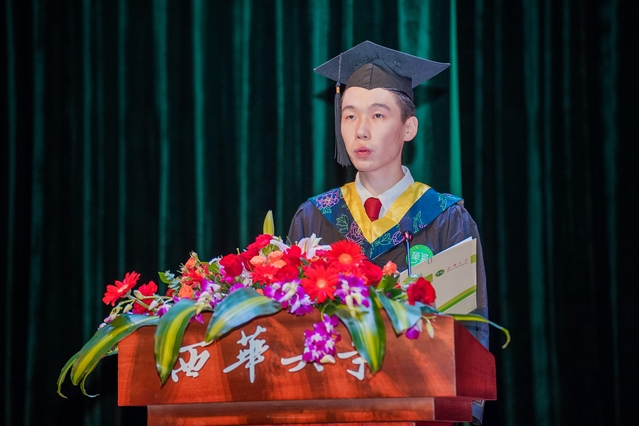 “这里承载了我们最美好的青春记忆,已然成为铭刻在我们内心深处最绚丽的一抹色彩。”本科生代表、电气与电子信息学院学生徐竣锋表达了对母校的依恋之情,他倡议同学们共同传承“知难而进,自强不息”的办学精神,牢记“求是、明德、卓越”的校训,让青春在党和人民最需要的地方绽放绚丽之花。