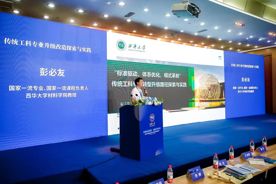 彭必友教授做作了题为《标准驱动、体系优化、模式革新”传统工科专业转型升级路径探索与实践》的报告,介绍了西华大学材料成型专业升级改造情况,分享三维数字化技术一流课程群建设的体会。