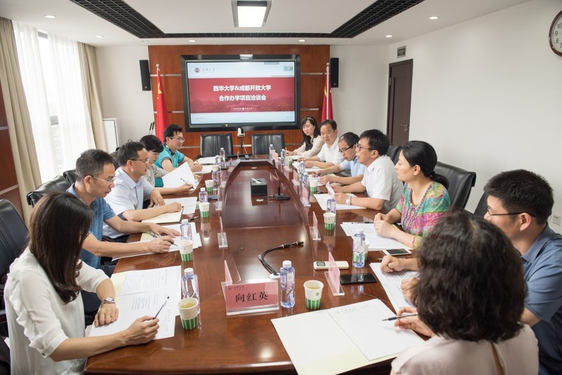 为进一步落实西华大学与成都开放大学战略合作协议,6月30日上午,成都开放大学到校与我校法学与社会学学院在办公楼413会议室举行了合作办学项目洽谈会。成都开放大学校长黄兴国、副校长陈琳等一行六人,校党委副书记张力、法学与社会学学院领导班子成员、相关教师参加了本次会议。会议由法学与社会学学院党委书记张雪征主持。