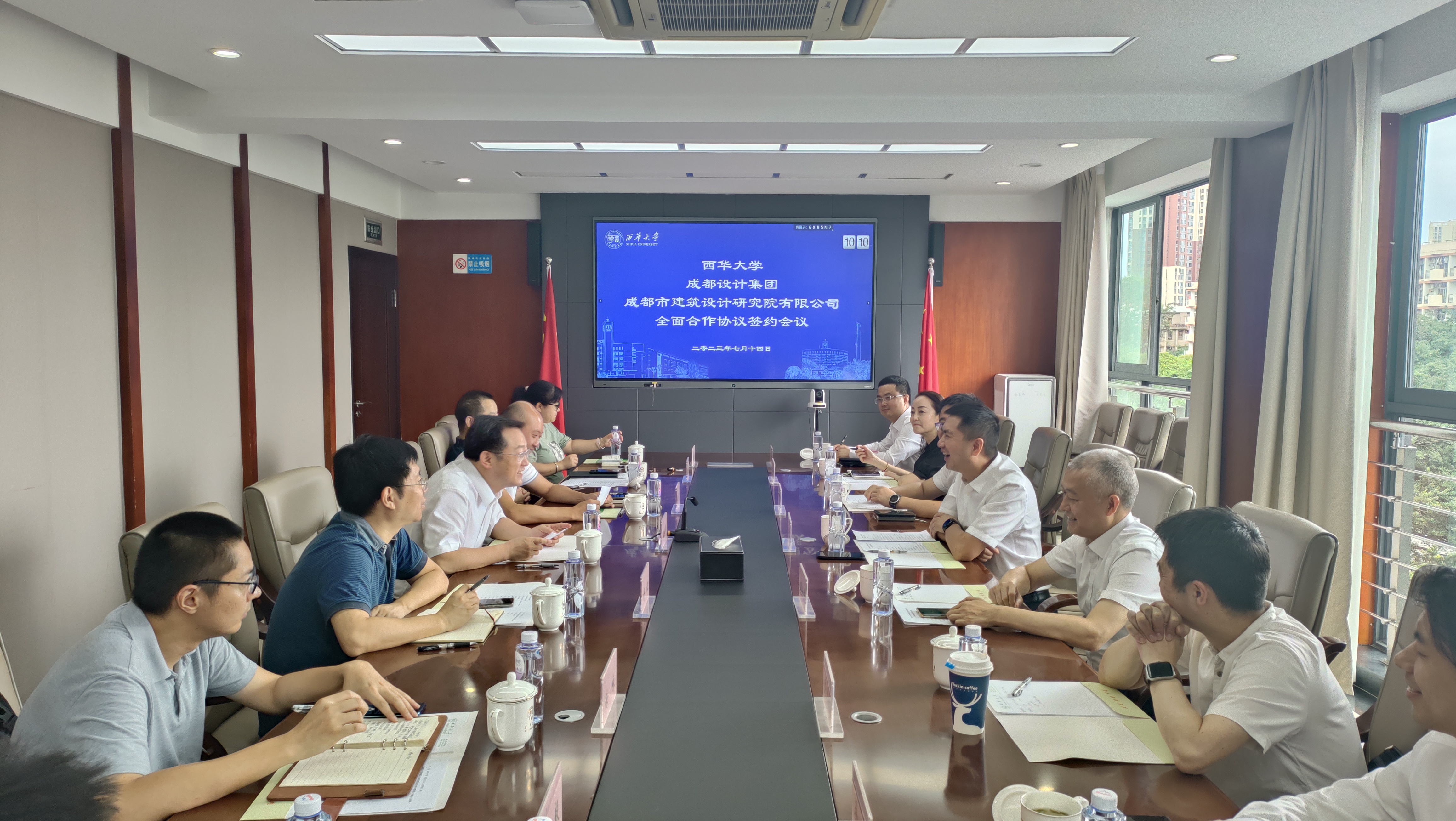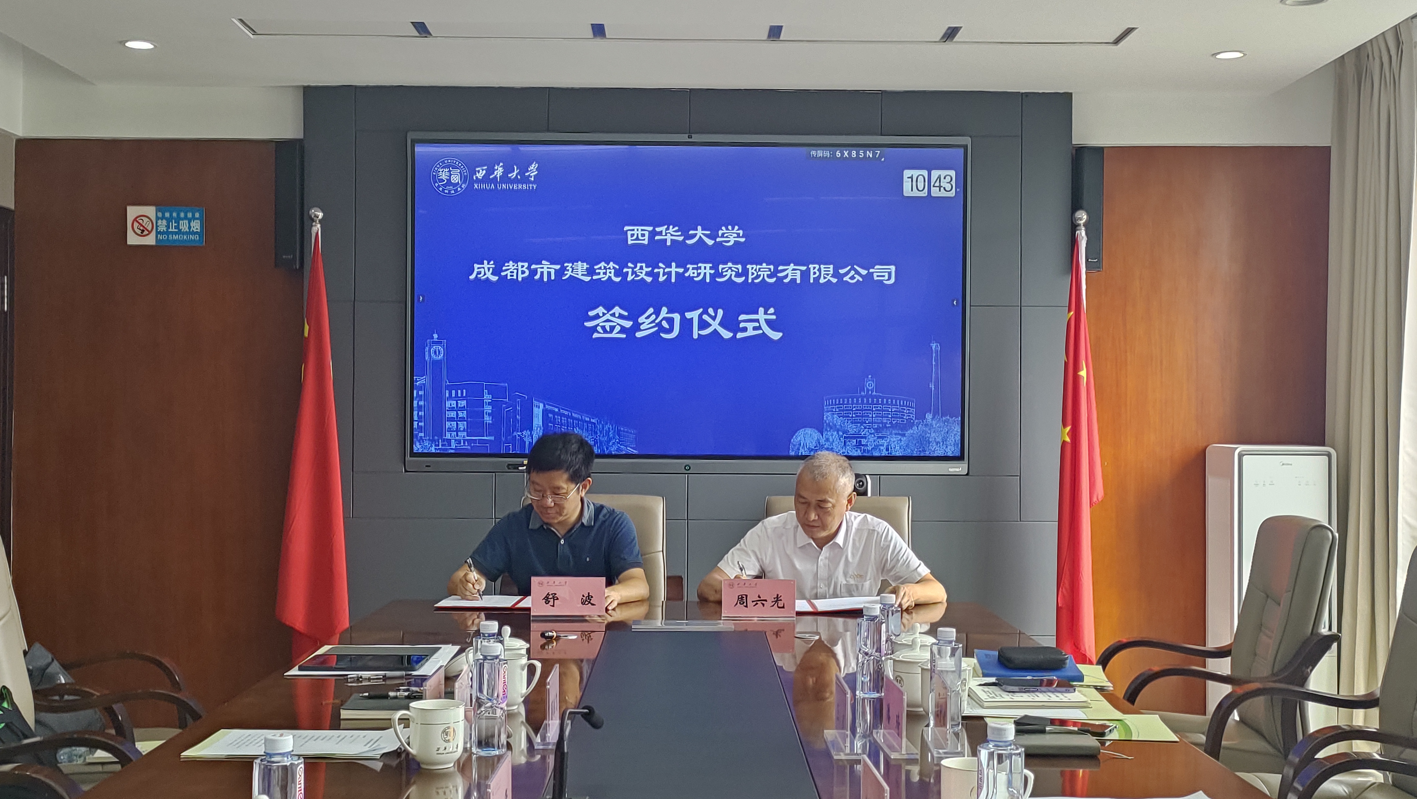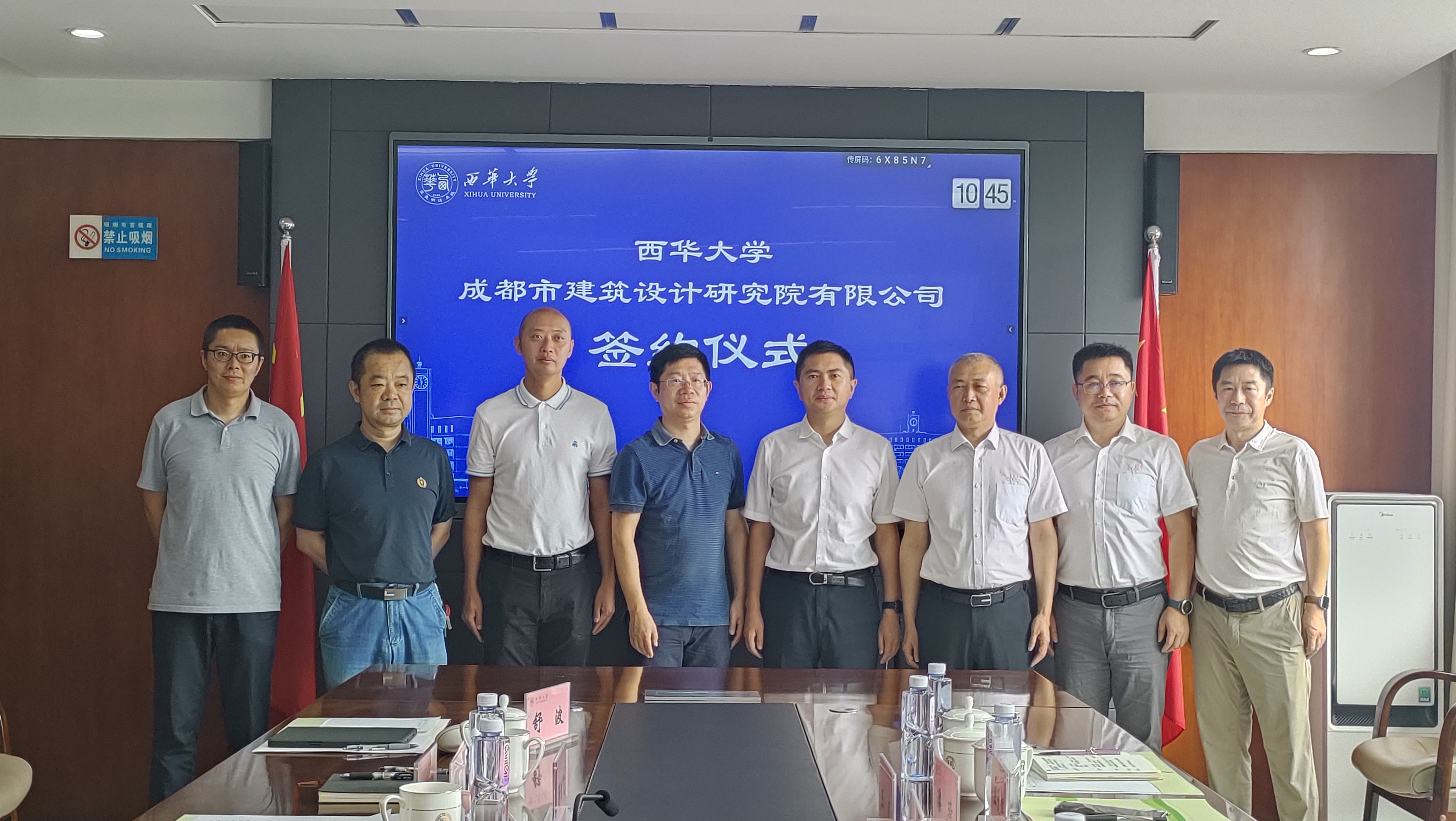 7月14日,西华大学与成都市建筑设计研究院有限公司(以下简称“市建筑院”)全面合作协议在办公楼412会议室举行。成都设计咨询集团总经济师刘兆兵,成都市建筑设计研究院党委副书记周六光、副总经理王武、执行副总建筑师陈迎九、市场经营部部长潘琦、方案创作中心/TOD设计中心副主任蒋飞、市场经营部市场主管王文辉;副校长郎方年,建筑与土木工程学院党委书记顾鸿飞,院长舒波,副院长向天宇及学院部分教师参加签约仪式。